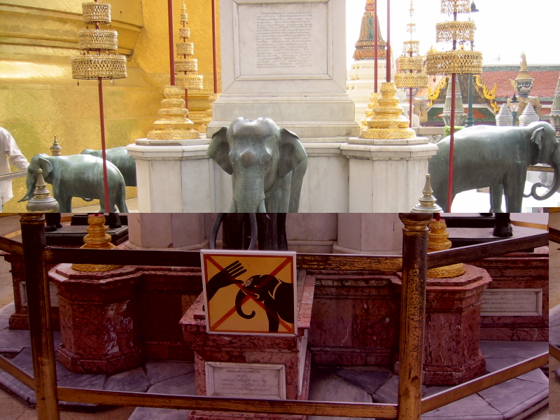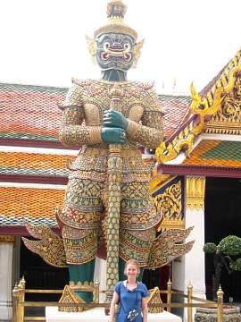 Here's Nicole in front of one of the "guard" statues in one of the Wats near to the Emerald Buddha in Bangkok. (FYI: The "Emerald Buddha" is actually made of Jade.)
