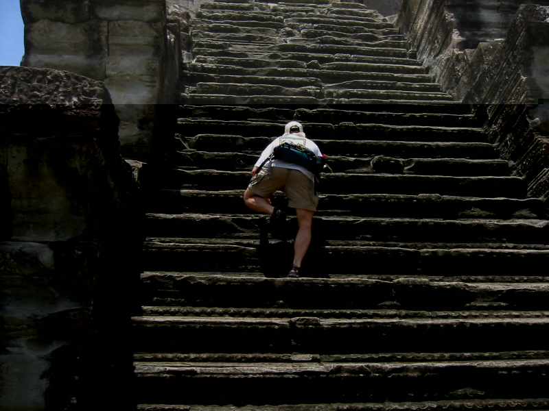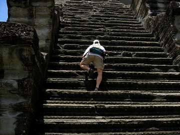 but he's gripping the rock with white knuckles, hoping to avoid a