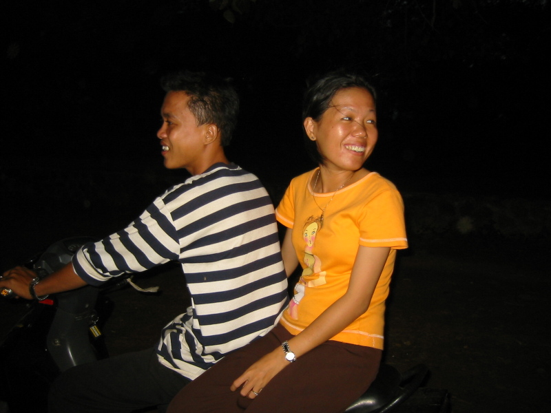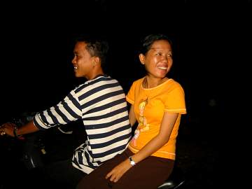 "motorbikes" (think: souped up mopeds), with one person in front and
